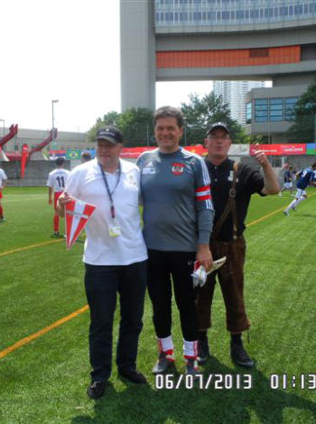 Integrationsfußball WM in WienWien, 06. Juli 2013Nationalmannschaft Österreichische Bürgermeister verliert 0 : 1 gegen FC NationalratAn diesem Tag muss der Fußballgott wohl geschlafen haben! Trotz massiver Überlegenheit der Bürgermeisterkicker ging der FC Nationalrat mit 1 : 0 als Sieger vom Platz. Es waren einfach zu viele Chancen, die das Bürgermeister-Team ungenützt ließ.In der ersten Hälfte genügte dem FC Nationalrat eine Unachtsamkeit in der Bürgermeisterabwehr und so ging man kurz vor der Pause in Führung. Zuvor hatten die Bürgermeister aber bereits mehrere gute Chancen ausgelassen.Die zweite Spielhälfte war dann ein Sturmlauf auf das Tor des FC Nationalrat, doch der großartige Schlussmann machte zahlreiche Chancen zunichte. Hecktisch wurde es dann noch einmal zum Schluß der Partie, als Bgm. Rudi Plessl aus Untersiebenbrunn (er hatte schon zuvor zahlreiche Chancen vernebelt) einen klaren Elfmeter nicht zugesprochen bekam. Am Schluss musste man schließlich die Niederlage eingestehen, aber - es gibt sicher eine Revanche.Ein großes Lob möchten die Bürgermeister-Fußballer jedenfalls dem Organisationsteam der Casinos Austria Integrationsfußball WM aussprechen. Die Idee ist großartig, aber mehr noch muss das Engagement von Erwin Himmelbauer und Thomas Ebner für diese Sache gelobt werden.